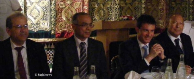 Le président du CFCM Dalil Boubakeur (à dr.) aux côtés de Manuel Valls à l'iftar à la Grande Mosquée de Paris. Tout à gauche, Mohammed Moussaoui, président d'honneur du CFCM.