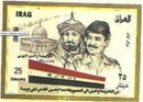 Timbre représentant Saladin et Saddam Hussain en libérateur de Jérusalem