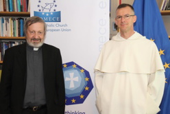 Le directeur général de L’Œuvre d’Orient, Mgr Pascal Gollnisch (à gauche), aux côtés du prêtre Olivier Poquillon. © COMECE