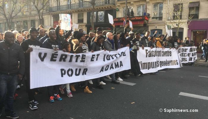 C'est autour du slogan « Justice pour Adama » qu'un millier de personnes ont manifesté dans les rues de la capitale parisienne. © Saphirnews.com
