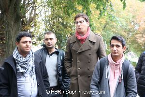 Mehdi Bouteghmes (au centre), un des seuls élus courneuviens mobilisés aux côtés des Roms dont Jozsef Farkas (à gauche) est le porte-parole.