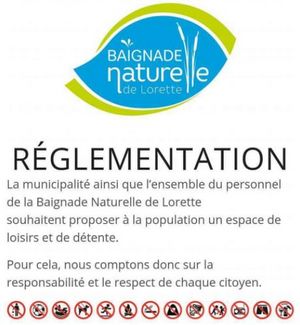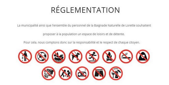 Le règlement du bassin de baignade naturelle municipale, ouverte au public depuis samedi 24 juin et qui peut accueillir jusqu'à 450 personnes en même temps, stipule que les femmes voilées sont interdites de baignade mais aussi d’accès, au même titre que sont prohibés les fumeurs et les chiens dans « l'espace de loisirs et de détente », comme en témoignent les pictogrammes (plus haut) barrés d’un trait rouge.