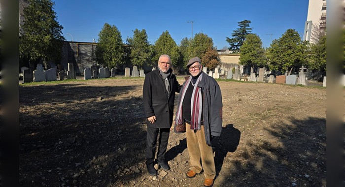 Kamel Kabtane, recteur de la mosquée de Lyon, avec Azzedine Gaci, recteur de la mosquée de Villeurbanne, ici au cimetière de la Guillotière, à Lyon, où un nouveau carré musulman verra le jour courant 2025. © DR
