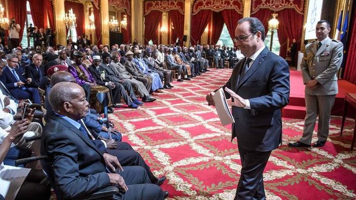 A quelques semaines de son départ de la présidence, François Hollande a reçu à l’Elysée, samedi 15 avril, 28 d’entre ces combattants africains, qui ont aujourd’hui entre 79 et 91 ans, pour une cérémonie de naturalisation.