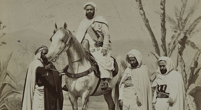 Louis Jean Delton, Portrait d'Abd el-Kader à cheval, 1865, photographie. Archives nationales d'outre-mer, Aix-en-Provence © FR ANOM. Aix-en-Provence (139 APOM/2) – Tous droits réservés