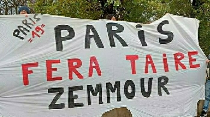 En marge de ce meeting, environ 2 500 personnes ont manifesté dans les rues de Paris à l'appel d'une soixantaine de syndicats et d'associations afin de marquer leur opposition à Eric Zemmour et à ses idées racistes. La manifestation, partie depuis Barbès et qui a pris fin à La Villette où le meeting du polémiste devait initialement se tenir, s'est déroulée dans le calme.