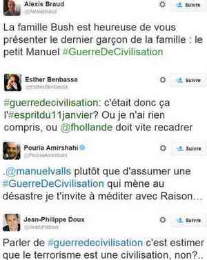 Des tweets en réaction des propos de Valls sur la "guerre de civilisation".