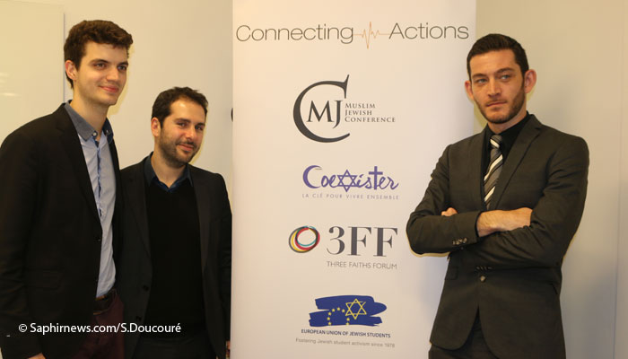 Emmanuel Michel (Coexister), Rafaël Tyszblat et Ilja Sichrovsky (MJC) lors du symposium consacré au dialogue interreligieux et interculturel à la FIAP Jean Monnet. ©Saphirnews/S.Doucouré.
