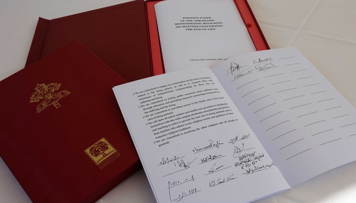 Plusieurs hauts dignitaires issus des rangs des trois religions monothéistes ont signé au Vatican une déclaration commune inédite contre l’euthanasie et le suicide assisté, des pratiques qui doivent être « interdites sans exception » car elles sont « sont intrinsèquement et moralement répréhensibles ».