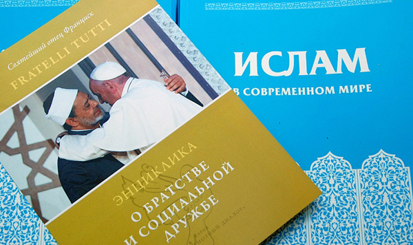 « Je pense que la réflexion et le dialogue sur cette encyclique peuvent être utiles non seulement à la Fédération de Russie, où le dialogue entre chrétiens et musulmans est appelé à se développer, mais aussi à la famille humaine dans son ensemble », a indiqué le pape. « Je vous souhaite à tous une étude fructueuse de ce texte et que vous puissiez en tirer profit dans votre vie personnelle et sociale. »