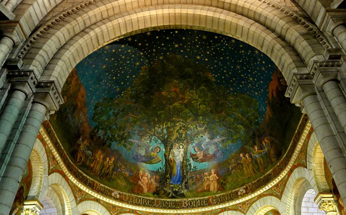 « Apparition de la Vierge aux druides », fresque de François Zbinden, se trouvant dans l'abside de la basilique Notre-Dame-de-Bonne-Garde, de Longpont, dans l'Essonne (photo : P. Poschadel)