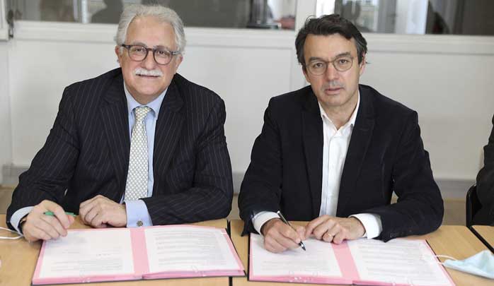 La Licra a annoncé, jeudi 23 mai, la fin d'un partenariat noué avec la Grande Mosquée de Paris en 2021. Ici Mario Stasi (à droite) aux côtés du recteur Chems-Eddine Hafiz.lors de la signature de la convention de partenariat.