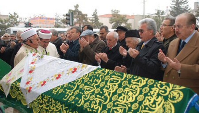 Yildiz Ay témoigne : la cérémonie de son enterrement fut annoncée par les mosquées pour que toute la ville en prenne connaissance. À 11h, l’enterrement fut précédé d’une prière selon le rite funéraire musulman, devant la mosquée de Selimiye, à l’intérieur du musée consacré à Mevlana. Des centaines de personnes participèrent au cérémonial. Son cercueil, entouré d’un tissu vert fut ensuite transporté au cimetière d’Üçler, en passant devant le mausolée à dôme vert de Mevlana.
