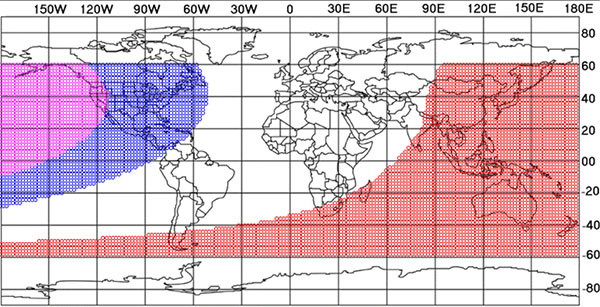 Selon la carte prévisionnelle de l’IAC pour le samedi 29 mars 2025, le nouveau croissant lunaire ne sera visible que dans une petite partie du monde (zones en magenta et bleu).