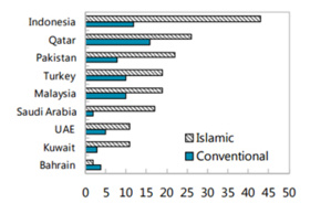 Le Soudan, l'Iran, l'Arabie Saoudite, le Brunei et le Koweït font partie du top 5 des pays dont la finance islamique détient plus de 50 % de part de marché. (source : FMI)