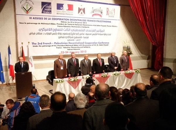 Les Assises de la coopération décentralisée franco-palestinienne se sont tenues les 23 et 24 janvier à Hébron, en Cisjordanie, en présence du Premier ministre palestinien Salam Fayyad et du ministre français chargé de la Coopération Henri de Raincourt. Cette rencontre, la troisième du genre mais la première à se tenir dans les Territoires occupés palestiniens, a réuni 400 participants, dont près de 200 élus et représentants de collectivités locales françaises, engagés dans des accords de coopération avec les villes palestiniennes.