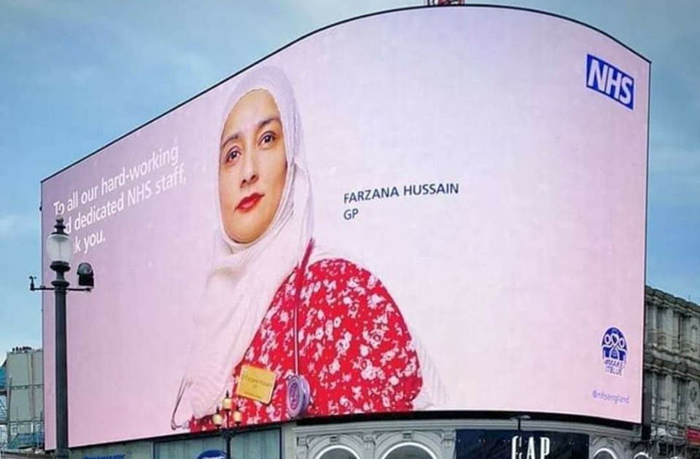 Parmi ces 12 visages représentatifs de la diversité des rôles, des parcours et des origines des personnes travaillant pour le NHS, les Britanniques ont découvert celui de Farzana Hussain, une médecin généraliste exerçant à Newham, dans l'est de Londres. Cette femme originaire du Bengladesh a remporté en 2019 le prix du meilleur médecin généraliste de l’année. Ce prix Pulse vise à « reconnaître un médecin généraliste ayant apporté une contribution exceptionnelle aux soins aux patients dans leur région ».