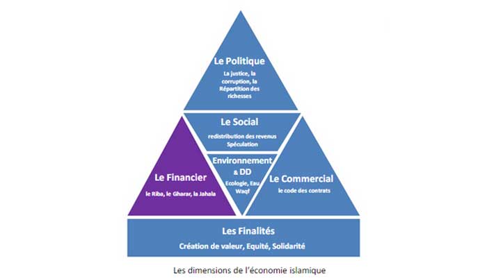 Bien avant le concept de développement durable qui a émergé à la fin du XXe siècle, « la législation islamique s’est dressée autant contre la surexploitation des ressources naturelles que contre l’exploitation de l’homme par l’homme », affirme Abderrahmane Lahlou, spécialiste de l’économie et de la finance islamique. Schéma ci-dessus : Les dimensions de l’économie islamique. (Photo : © ABWAB Consultants)