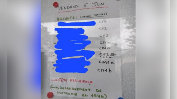 Qu'est-il passé par la tête du directeur de l'école Angela Davis à La Courneuve (Seine-Saint-Denis) ? Celui-ci a publiquement affiché, la veille du 6 juin, les noms de huit enseignants avec le motif de leur absence le lendemain : « fête religieuse », en l'occurrence l'Aïd al-Adha. Une référence au « débarquement de Normandie de 1944 » - qui a eu lieu un 6 juin - a également été ajoutée.
