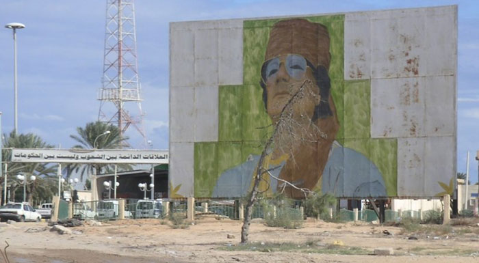 Portrait de Mouammar Kadhafi à l'entrée en Libye, à Ras Jedir, en novembre 2008. (Photo : JPRoger)
