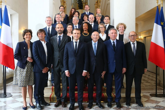 3. la composition du gouvernement, également très classique à tous les niveaux, malgré les effets-pubs « visages-nouveaux » et le saupoudrage de membres d’une pseudo-« société civile » pour l’essentiel mutilée, car doublement réduite d’abord à une affaire de professionnels, ensuite à des membres de la très haute managerial class. Des « méritants » souvent issus des mêmes grandes écoles que leurs collègues professionnels de la politique et Macron lui-même.