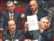 Ultime recours de l'opposition, déposer la motion de censure. Pour ce faire, solliciter l’article 49-2 ! Mais cette demande, commanditée par le PS et suivi des autres PCF et Vert (UDF n’ayant pas suivi), permet simplement de retarder l’adoption. L’article 49-2 permet de faire démissionner le gouvernement en place si elle est votée par la majorité des députés. Peine perdue car une majorité de droite vote forcément à droite !