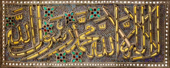 Vitrail en stuc et verre représentant la shahada, la profession de foi musulmane (Égypte, 1800-1880).