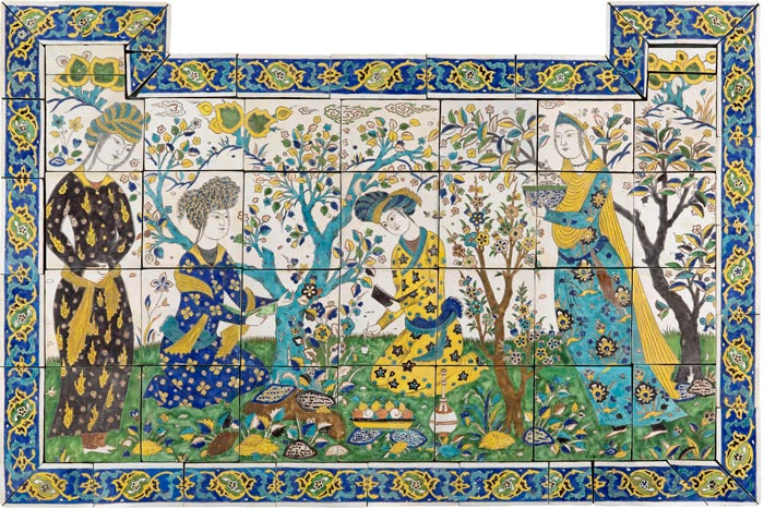 Panneau de revêtement à la joute poétique, daté du XVIIe siècle, en provenance d'Ispahan, dans l'actuel Iran. © 2012 Musée du Louvre / Raphaël Chipault