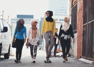 Dans la vidéo postée sur YouTube, ces femmes affichent leur double identité en arborant des tenues très stylisées (et colorées) tout en portant le hijab sur fond sonore de la chanson « Somewhere America » de Jay-Z.