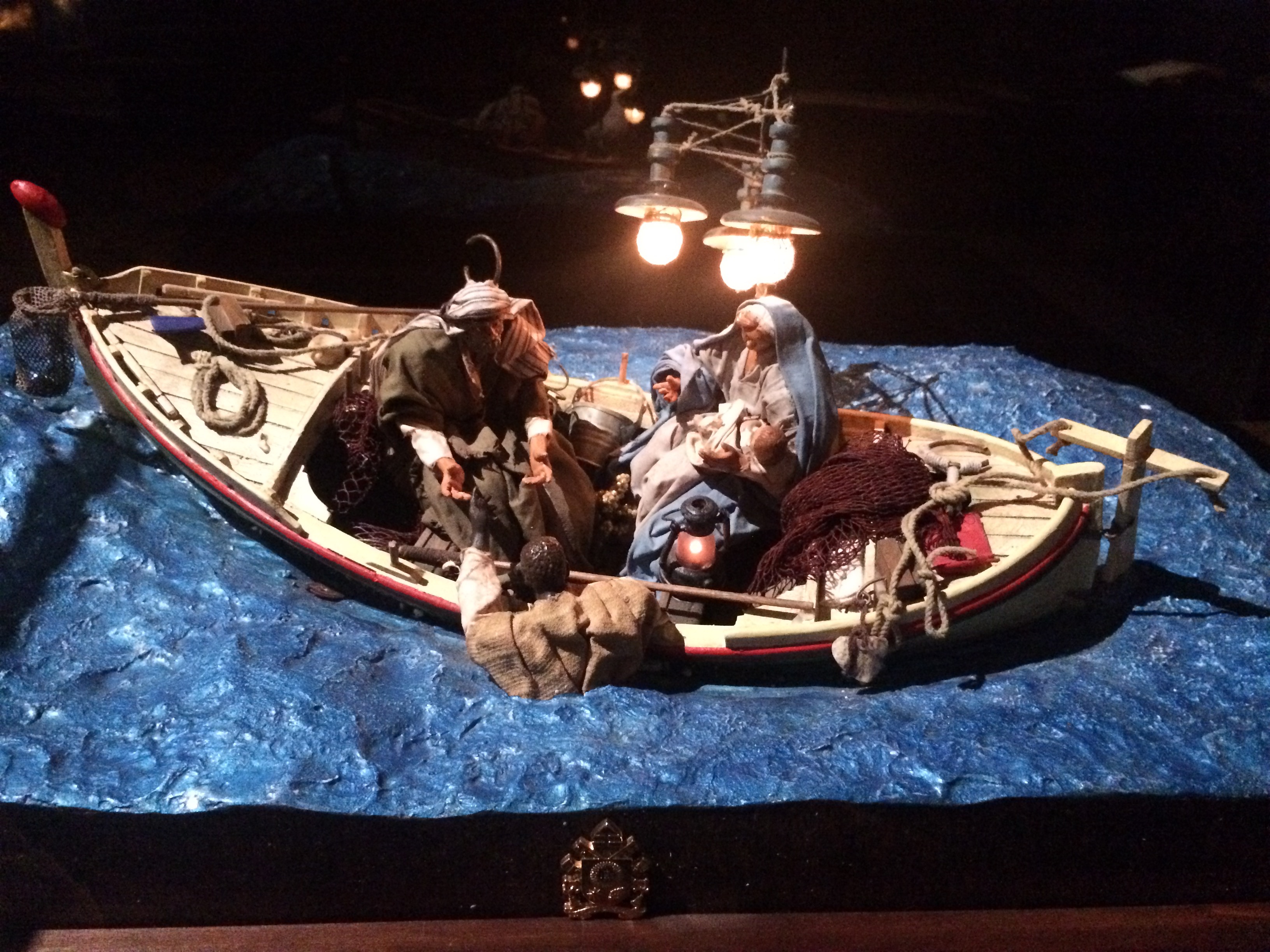 Les plasticiens italiens Benito Badolato et Pasquale Godano ont conçu une crèche en bois et résine sous la forme d’une barque en mer. La sainte Famille tend les bras vers un migrant afin de le sauver de la noyade. L’œuvre a été offerte au pape François en décembre 2013. Le souverain pontife l’a à son tour remise à la paroisse de Lampedusa.