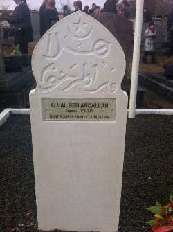 Karim Loukia a ensuite prié pour les six musulmans morts pour la France. « Deux sont identifiés : le caporal Allal Benabdallah qui avait 30 ans le 18 juin 1940 le jour de sa mort, et le soldat Aomar Ben Benaïssa mort le même jour à l’âge de 23 ans. Les quatre autres sont inconnus mais nous savons qu’ils faisaient partie du 9e Régiment de tirailleurs marocains. Entre parenthèses, les tirailleurs (algériens, tunisiens et marocains) ont, de 1830 à 1963, payés le lourd tribut de 250 000 victimes morts pour la France », a précisé l'aumônier.