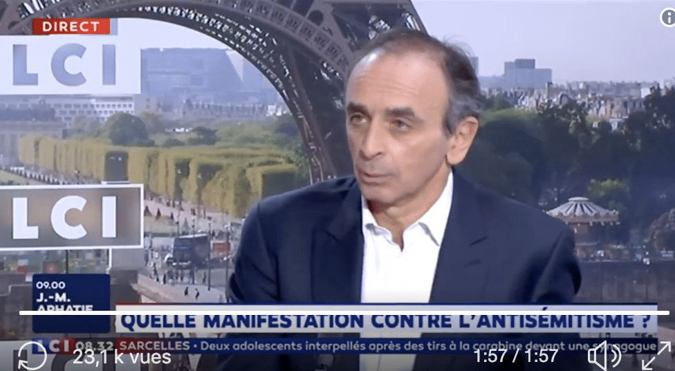 Reçu en plateau pour parler des diverses manifestations de l'antisémitisme, le polémiste, habitué à tenir des propos polémiques visant les musulmans. avait ajouté qu’« endiguer une immigration de masse qui est aujourd’hui le terreau de l’antisémitisme » était nécessaire en France.