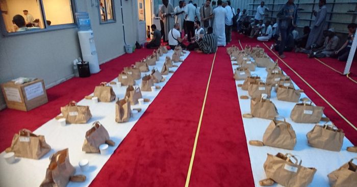 L’association prépare en amont un menu de base composé d’une bouteille d’eau et d’une bouteille de lait de chacune 50 cl, d'une bouteille de jus d’orange entre 20 et 25 cl (selon les arrivages), d’une petite boîte en plastique avec l’équivalent de 7 dattes, une pâtisserie orientale et un fromage. La box est ensuite complétée à la mosquée par un petit pain frais, réalisé par un boulanger du coin, un œuf dur, une crêpe feuilletée (msemen) ou une crêpe mille trous (baghrir) et un fruit. Le tout sans oublier la fameuse soupe chaude servie dans un contenant spécialisé. « On ne garde rien, tout ce qui arrive est redistribué », assure Norouda.