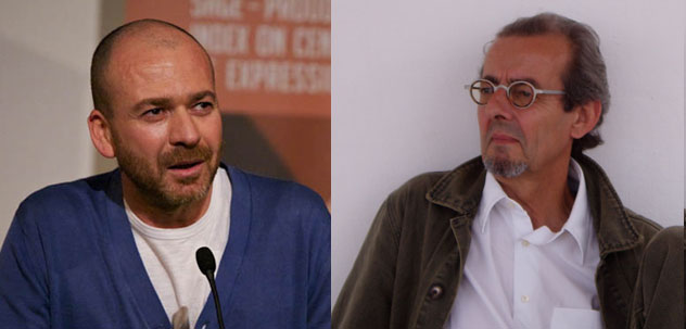 Sami Ben Gharbia (à g.), cyberactiviste, fondateur du blog d’opposition tunisien participatif Nawaat et directeur de plaidoyer à Global Voices, et Yves Gonzalez-Quijano (à dr.), maître de conférence en littérature arabe à l’Université de Lyon II et chercheur à l’Institut français du Proche-Orient, sont les deux intervenants à la conférence sur le cyberactivisme du monde arabe, organisée à l'initiative du Mouton Numérique, samedi 16 décembre, à l'Institut du monde arabe.
