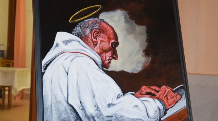 Un tableau représentant le prêtre Jacques Hamel, tué en juillet 2016 dans son église à Saint-Etienne-du-Rouvray (© Blog Ser-Ta-Paroisse)