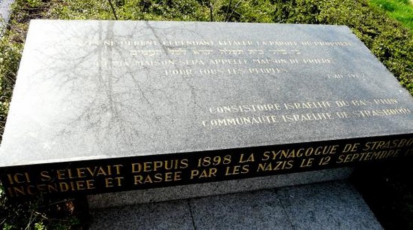 Cette stèle, qui renvoie à la destruction de l'ancienne synagogue de Strasbourg brûlée et rasée en septembre 1940 par les nazis, fait partie désormais de la mémoire collective de tous les Strasbourgeois.