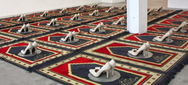 Escarpins sur tapis de prière : une installation artistique retirée