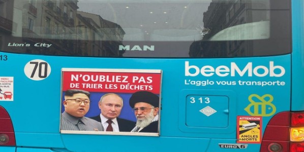 « N’oubliez pas de trier les déchets. » Telle est le slogan de la campagne lancée mercredi 8 janvier par la municipalité de Beziers (Hérault) pour inciter ses habitants au tri sélectif. Mais voici que pour l'accompagner, elle a choisi d'utiliser les portraits des dirigeants nord-coréen et russe Kim Jong Un et Vladimir Poutine, ainsi que du guide suprême iranien, Ali Khamenei, ce qui a provoqué l'ire des autorités iraniennes.