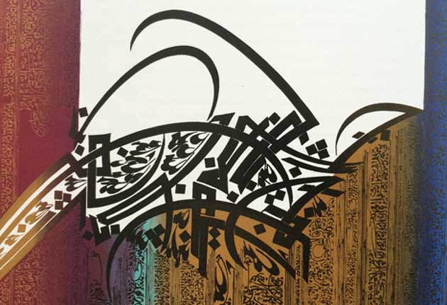 Calligraphie de Nja Mahdaoui, tirée de l'ouvrage « La Volupté d'en mourir », tiré des Mille et Une Nuits (Éd. Alternatives, 2001).