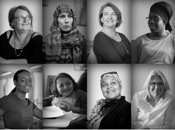 Portrait des intervenantes. En haut (de gauche à droite) : Ghislaine Durand, Karima Mondon, Annie Chaperon et Fatoumata Kebe. En bas : Aya Cissoko, Elisa Rojas, Fatima Abidallah-Chaabi et Béatrice Barbusse.
