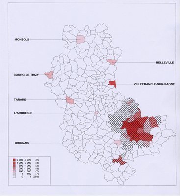 La figure 3 ci-dessous indique la fréquentation des lieux de cultes musulmans dans le département du Rhône. Les parties hachurées représentent la communauté urbaine de Lyon dans laquelle il existe deux cimetières intercommunautaire disposant d’un carré musulman.